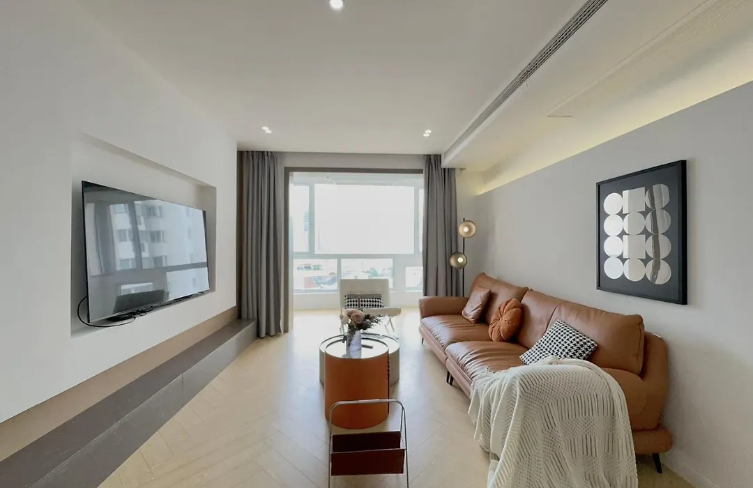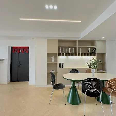 I den 218 m² stora lägenheten ligger i distriktet Jing'an och i närheten av Jing’ans skulpturpark. Cirka 10 minuters bilfärd från lägenheten hittar du Yuträdgården.